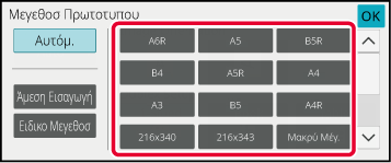 Πατήστε το κατάλληλο πλήκτρο για το μέγεθος του πρωτοτύπου.
