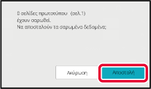 Ο αριθμός που εμφανίζεται είναι ο αριθμός των φύλλων των σαρωμένων πρωτοτύπων και όχι ο αριθμός των σελίδων των σαρωμένων πρωτοτύπων. Για παράδειγμα, όταν εκτελείται αντιγραφή διπλής όψης με χρήση ενός πρωτοτύπου, εμφανίζεται ο αριθμός "1" για να υποδειχθεί ότι σαρώθηκε ένα φύλλο πρωτοτύπου και όχι ο αριθμός "2" για να υποδειχθεί η μπροστινή και η πίσω σελίδα.Για να ξεκινήσει η αποστολή, πατήστε το πλήκτρο [Αποστολή].