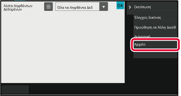 Τα ληφθέντα δεδομένα είναι καταχωρημένα.Πατήστε το πλήκτρο των ληφθέντων δεδομένων που θέλετε να αποθηκεύσετε και, στον πίνακα λειτουργίας, το πλήκτρο [Αρχείο].