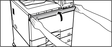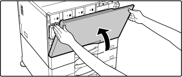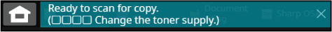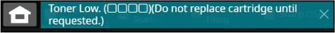 After the toner cartridge is replaced, the machine automatically enters image adjustment mode. Do not open the front cover while this is occurring.Warning