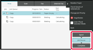 status, from [Spool], [Job Queue] and [Complete], in that