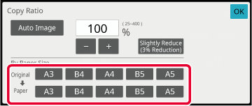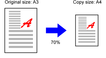 The reduction or enlargement ratio is automatically selected based on the original size and the selected paper size.This section explains how to specify any