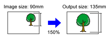 Specify the image size (dimensions of the image to be enlarged or reduced) and the output size (dimensions of the enlarged and reduced images).