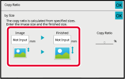 COPY MODESpecify the original size (paper size of the loaded original) and the copy size (paper size of the copy output).