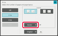A line can be inserted between pages arranged on a sheet.Tap the [Colour Start] or [B/W Start] key to start copying.