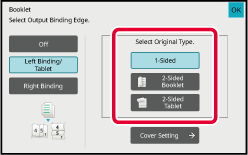 Tap the [1-Sided], [2-Sided Booklet] or [2-Sided Tablet] key as appropriate for the original.