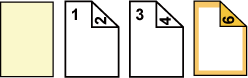 ![]() Inserts a front cover at the beginning of copies, and makes a 1-sided copy on the sixth original page for back cover. A 1-sided copy is made on the fifth original page. |