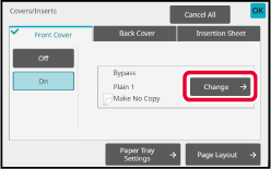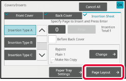 To exit this job after checking the page layout, tap the [OK] key.Change cover or insertion sheet settings.