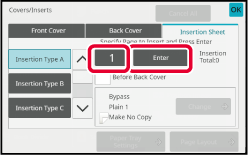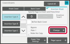 The total number of insertion sheets is displayed at the side of [Enter] key. Repeat these steps for the number of insertion sheets.Tap the [Change] key.