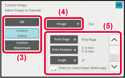 Place the original in the document feeder tray of the automatic document feeder, or on the document glass.Tap the [Others] key, and tap the [Custom Image] key.