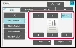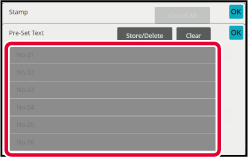 Place the original in the document feeder tray of the automatic document feeder, or on the document glass.Tap the [Others] key, and tap the [Stamp] key.
