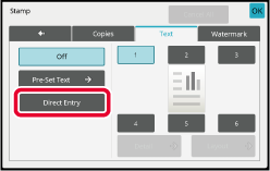 The format of the [Text] tab can be entered using pre-set text or soft keyboard.Tap a key of the desired print position.