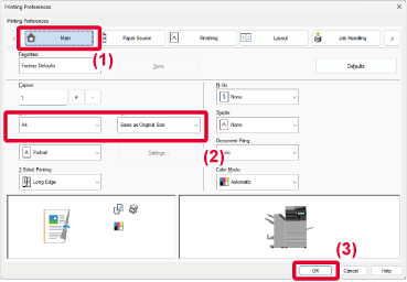 tab and "Output Size" is set to [Same as Original Size], "Paper Type" is automatically