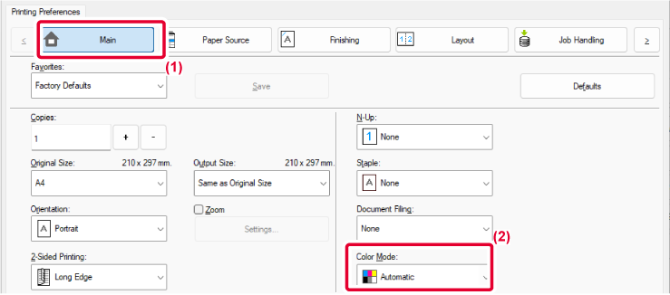 All pages are printed in black and white. Color data such as images or materials for a presentation is printed using black toner only. This mode helps conserve color toner when you do not need to print in color, such as when proofreading or checking the layout of a document. |