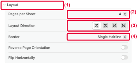 For example, when [2-Up] (2 pages per sheet) or [4-Up]