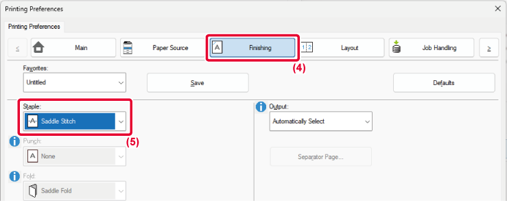 and the job is not output correctly with [Saddle Stitch], select [Saddle Stitch