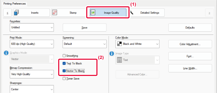 Select whether you want to print black data area with only black toner. |