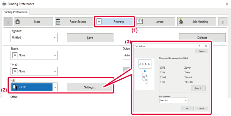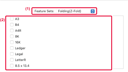 For example, if A4 (8-1/2" × 11") and A3 (11" × 17") size print images are mixed, only the A3 (11" × 17") size paper is folded and changed to A4 (8-1/2" × 11") size paper. Copies are output sheet by sheet. |