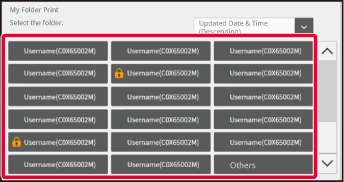 When there is no [My Folder Print] key on the touch panel, add a [My Folder Print] key on the home screen. For details on how to add the key, see " ADDING SHORTCUT KEYS".Tap the folder to be used.
