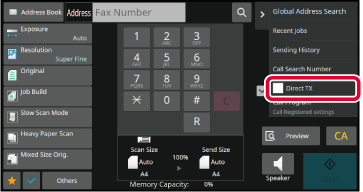 AUTOMATIC DOCUMENT FEEDERSpecify the destination fax number, and tap [Direct TX]