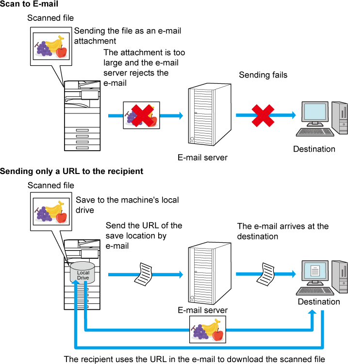 only a URL to the recipient to any e-mail addresses, while the scanned