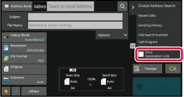 When [Enable Send Destination Link as Default] is enabled in the settings (administrator),