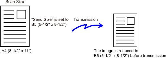 the scan size is A4 (8-1/2" x 11") and the send size is B5 (5-1/2"