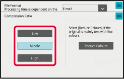 (On the BP-51C26/BP-51C31/BP-51C36/BP-51C45/BP-51C55/BP-51C65/ BP-56C26, the OCR expansion kit is required.) Tap the [Compression Mode] key or [Compression Ratio] key.