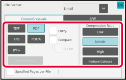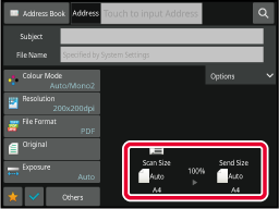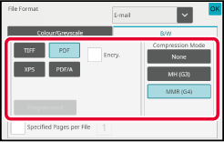 Tap the [Colour/Greyscale] or [B/W] tab and select the format mode for scanning.