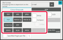 When the OCR function expansion kit is not installed on the BP-51C26/BP-51C31/BP-51C36/BP-51C45/ BP-51C55/BP-51C65/BP-56C26, or when [Disabling of OCR] is set in the system settings.To change the number of pages per file, set the [Specified Pages per File] checkbox