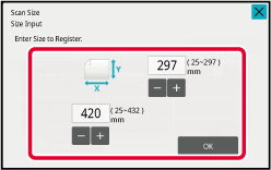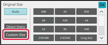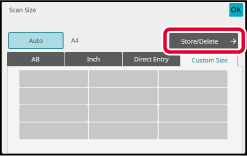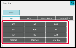 Tap the [Scan Size] key and tap the [Custom Size] tab.