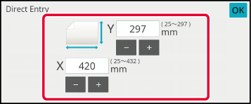 After tapping the "Scan Size" key, tap the [Direct Entry] key.