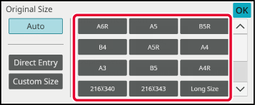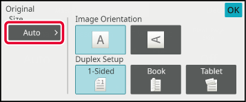 EASY MODEAfter tapping the [Original] key, tap the [Scan Size] key.