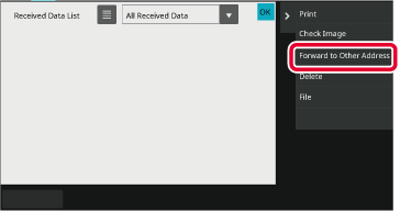 The received data is listed.Tap the key of the received data you wish to forward, and tap [Forward to Other Address].