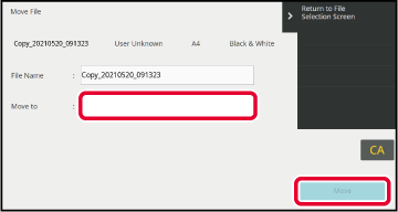 If the folder with a password is tapped, a password entry screen will appear.Tap the [Move] key.
