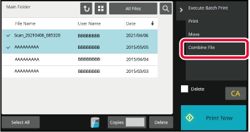 To select the user name, file name, folder, and property setting, see " File Information".Tap the [Execute] key.