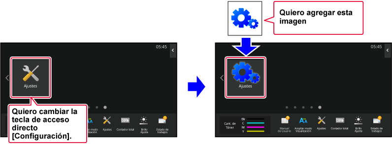 Los ajustes se guardarán en la máquina y se aplicarán.Para cambiar la imagen de una tecla de acceso