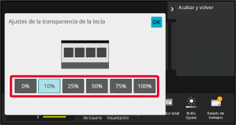 Los ajustes se guardarán en la máquina y se aplicarán.Puede cambiar la transparencia de la teclas