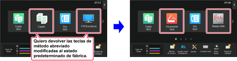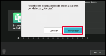 Las teclas de acceso directo volverán al estado predeterminado de fábrica.Una vez realizados los ajustes, toque la tecla [Cerrar sesión].