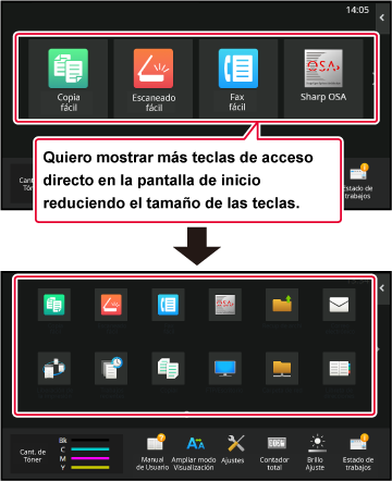 Los ajustes se guardarán en la máquina y se aplicarán.Puede añadir teclas de acceso directo a