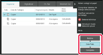 de estado de procesamiento, pulse la tecla [Bobina], [Cola Trab.]