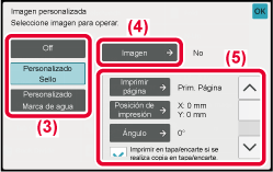Pulse la tecla [Sello personalizado] o la tecla [Marca de agua personalizada].