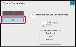 Coloque el documento original en la bandeja del alimentador de documentos automático o sobre el cristal de exposición.Pulse la tecla [Otros] y, a continuación, pulse la tecla [Fondo de Transparencias].