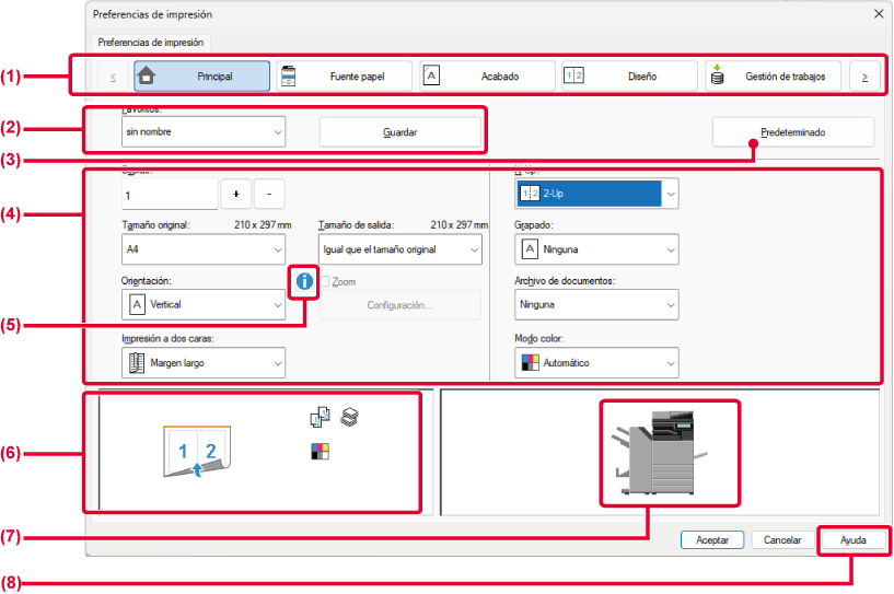 del controlador de impresora consta de 9 fichas. Haga clic en una