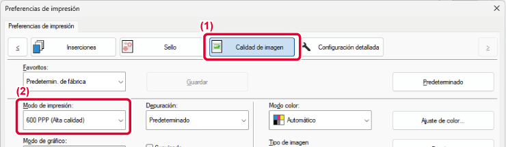 Seleccione este modo para imprimir fotos en color con una mayor definición y para imprimir líneas finas con claridad. |