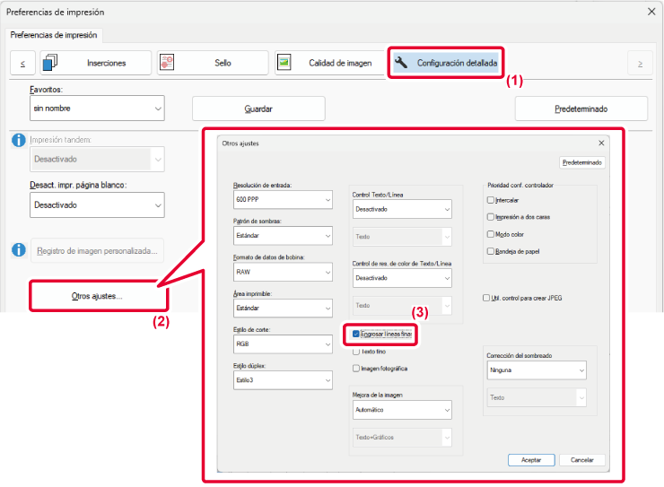 Si los datos contienen líneas de distinto grosor, puede imprimirlas