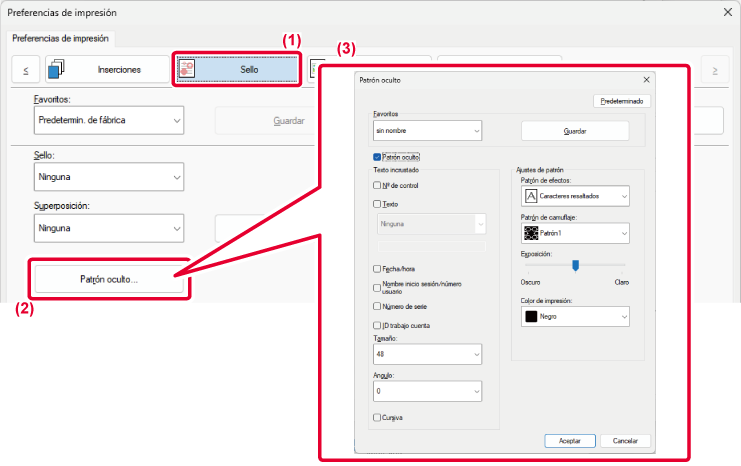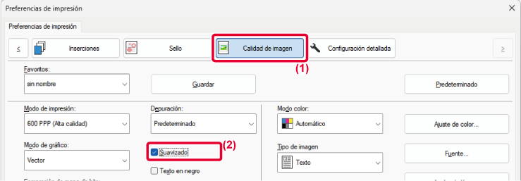 del controlador de impresora. El texto se imprimirá en las pestañas.