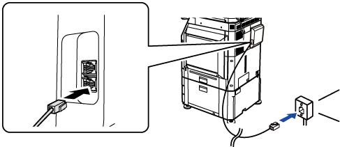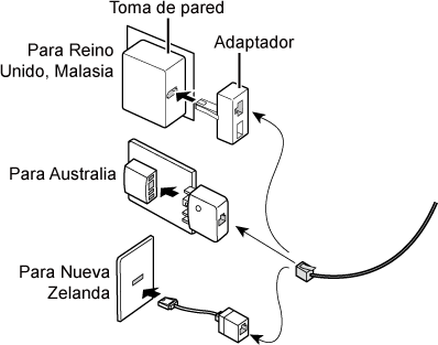 Conecte el enchufe en un extremo del cable de línea telefónica a la toma de la línea telefónica (LINE) de la máquina taly como se muestra, hasta que se oiga un clic, y conecte el otro enchufe a una toma de teléfono de la pared, hasta que se oiga un clic.Asegúrese de que el interruptor de alimentación principal