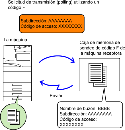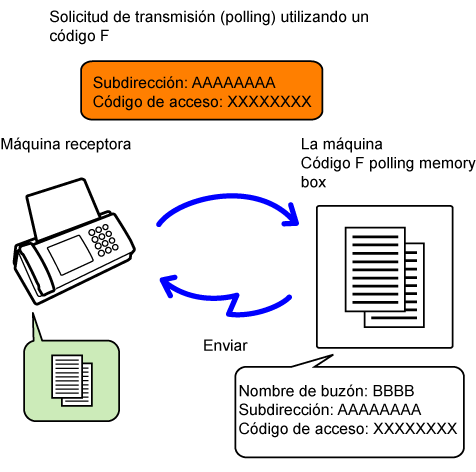 Buzón de memoria de polling con código F | Buzón confidencial con código F | Función de transmisión multienvío con reemisión y código F | |