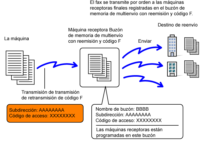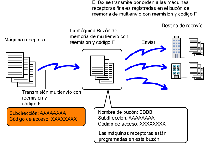 buzón de memoria de multienvío con reemisión con código F de su